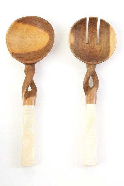 Twisted Kenyan Olive Wood Salad Servers with Bone Handles