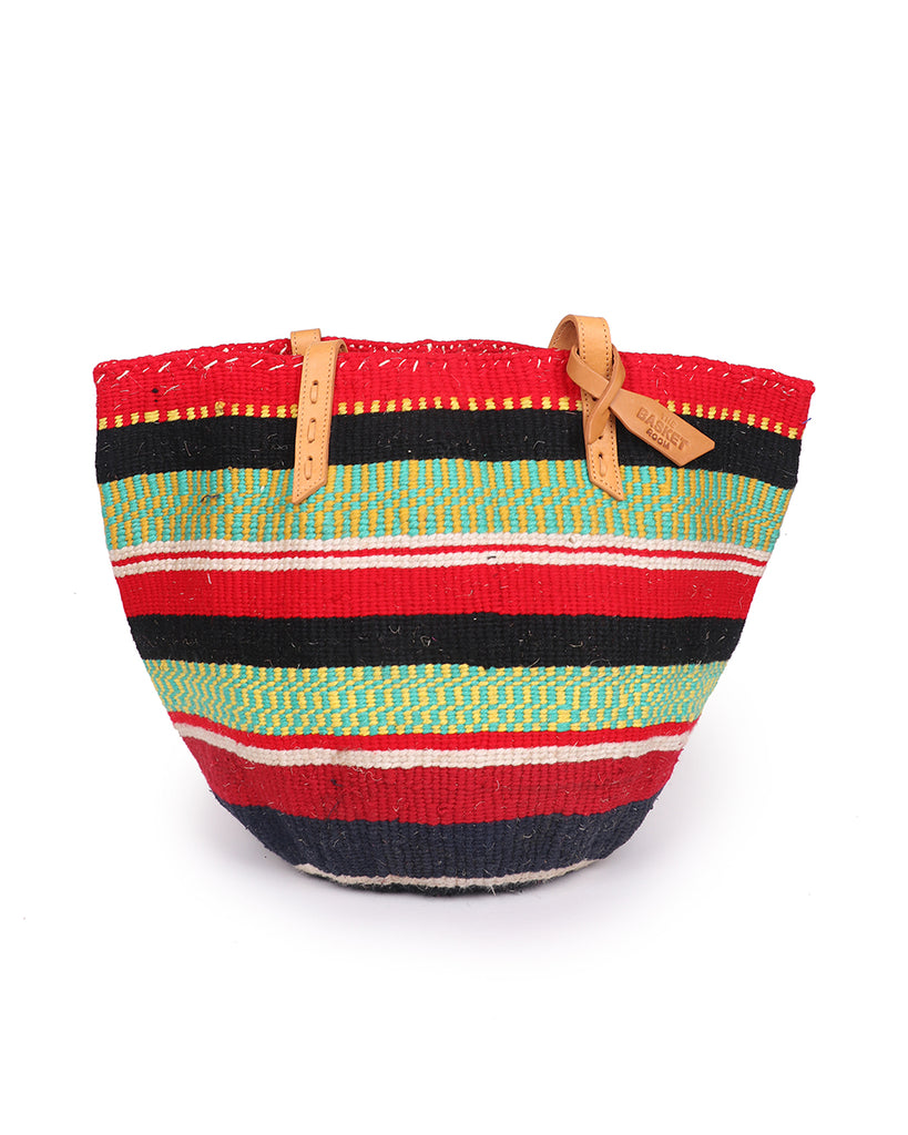 Our exquisite and ethical basket bags are inspired by tribal patterns and traditional Kenyan colourways, and hand woven by members of the Kamba tribe in Kenya. Each basket bag takes up to four days to complete before being sent to a local leather works to be fitted with beautifully supple cow hide straps.