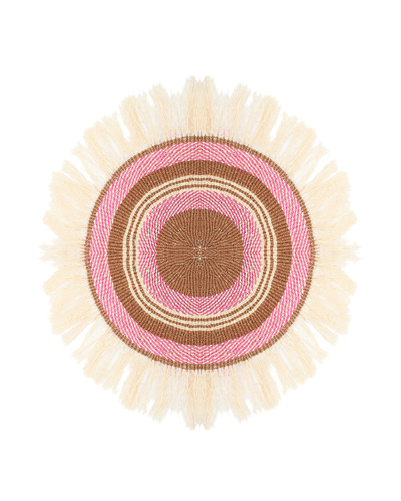 UTAPATA: Large Pink and White Fringed Wall Hanging: 41cm Dia