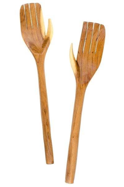 An incredibly whimsical set of salad servers carved from wild olive wood by talented Kenyan artisans.