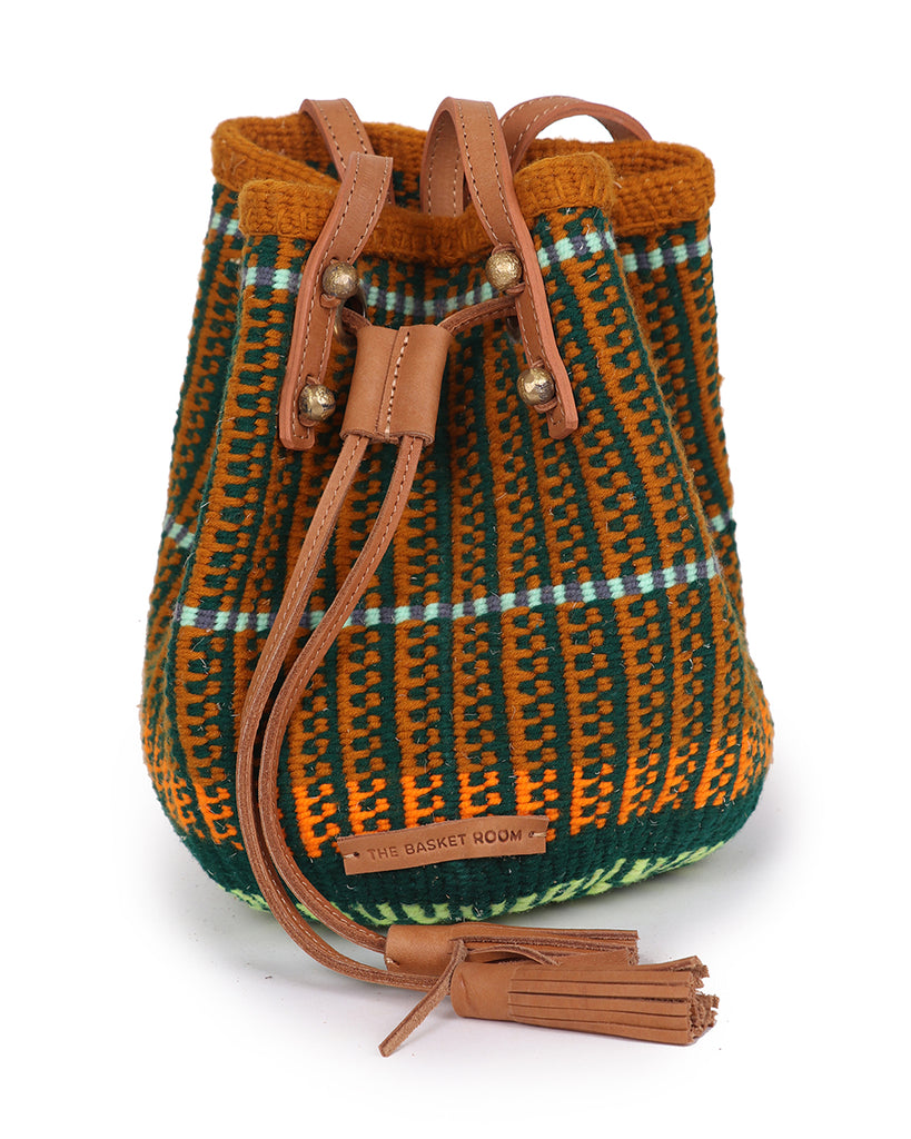 ZAMBASIKA : Handwoven Brown and Green Bucket Bag